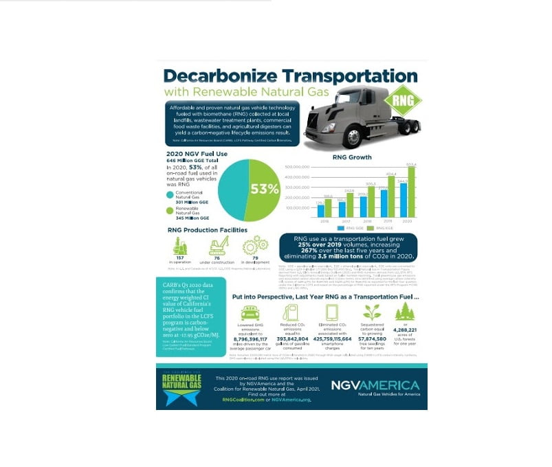 NGVAmerica and RNG Coalition today announced that 53% of all on-road fuel used in natural gas vehicles in calendar year
