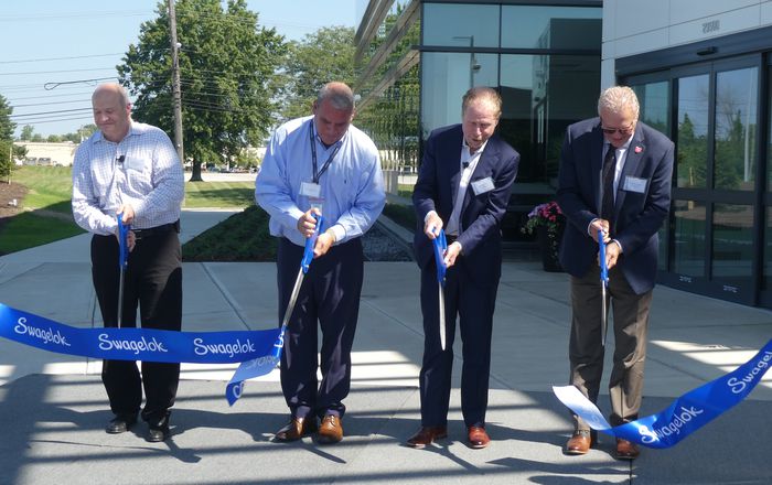 Local and state officials joined the executive leadership of Swagelok Company for a ribbon cutting ceremony celebrating the completion of