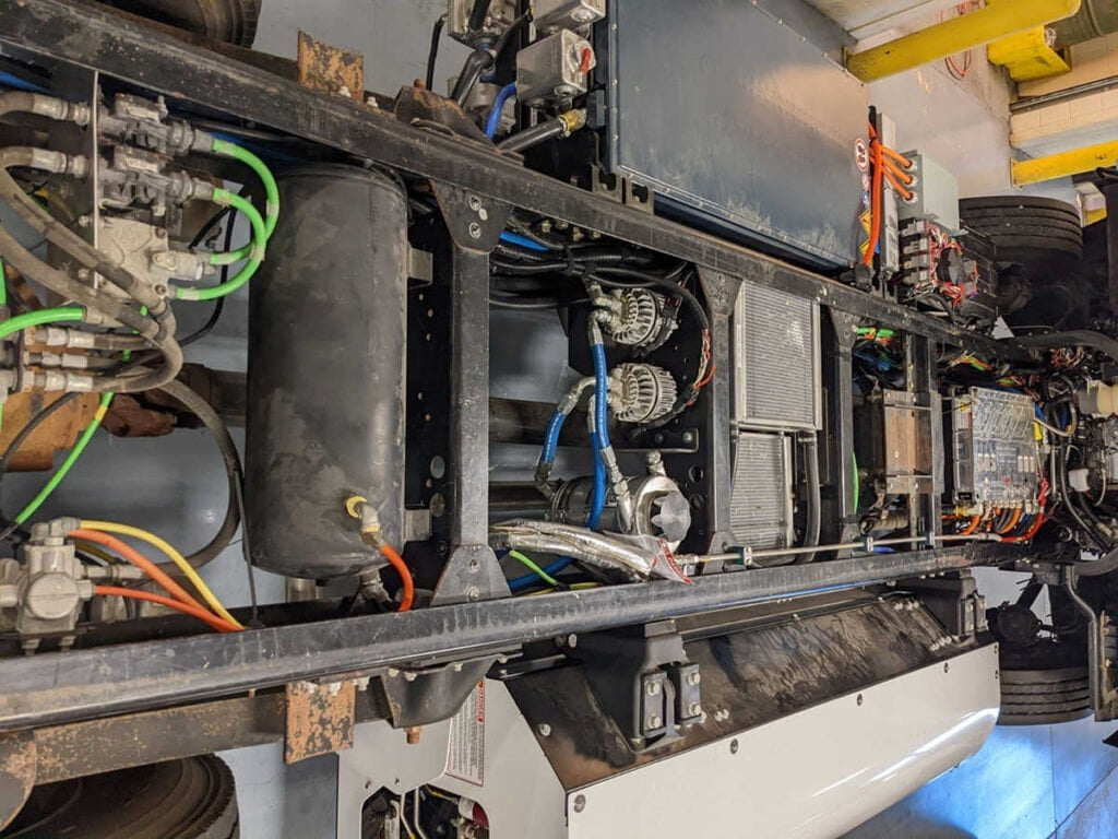 “Our engine runs as efficiently as a conventional diesel engine, but it produces 12% less carbon dioxide due to the lower carbon content of the natural gas fuel,” Williams said. “The addition of the hybrid powertrain allows us to turn off the engine for large portions of the operating cycle for additional CO2 reductions. We have shown a 25% reduction in GHG emissions under typical city driving conditions.”