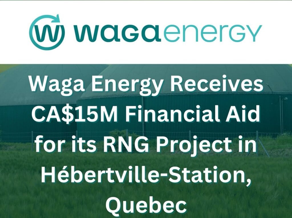 January 16, 2026. Waga Energy, a specialist in renewable natural gas (RNG) production from landfill gas, has been awarded a financial aid of CA$15M (US$10.8M) from the Quebec Government’s Ministry of Economy, Innovation, and Energy. This financial aid will finance part of the construction of a RNG production unit at the Hébertville-Station landfill in Quebec (Canada), owned and operated by the Régie des matières résiduelles du Lac-Saint-Jean (RMR – waste management authority of Lac-Saint-Jean).